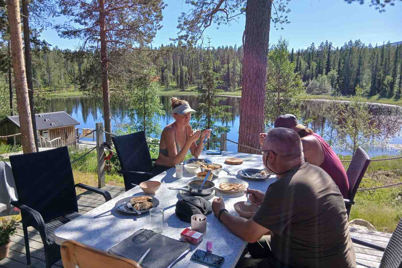 Kulinarisch verwöhnt werdet Ihr vorwiegend mit einheimischen Spezialitäten wie Rentier, Elch, Fisch, Kräutern, Beeren, Pilzen aus den Wäldern, Flüssen und Seen der Region.