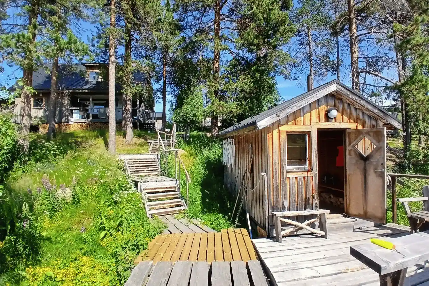 - Das Camp ist nur mit Booten erreichbar- und bietet doch einiges an Komfort wie ein gemütliches Haupthaus, Sauna und Feuerstellen.
