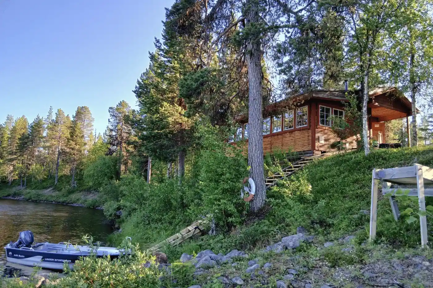 - Basis ist eine urgemütliche Lodge inmitten der Wildnis, von der wir zu den verschiedenen Angeltouren starten. Direkt bei der Lodge liegt ein kleiner See mit Badesteg und einer typisch schwedischen Holzofen-Sauna .