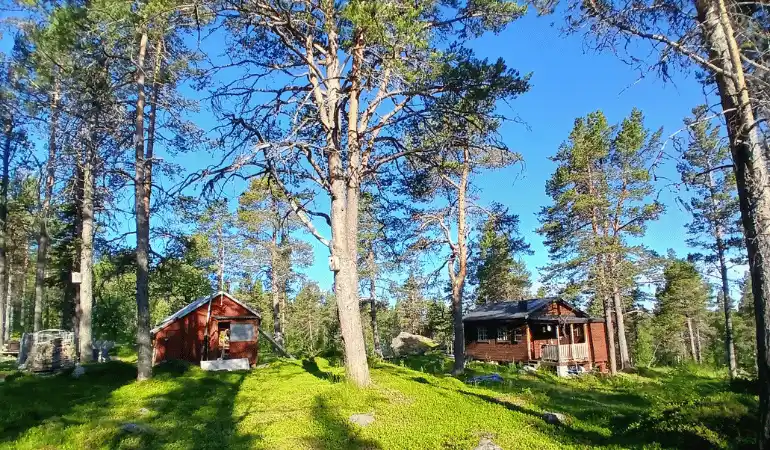 - Am Rautas übernachten wir in einer Wildmarkhütte mit Sauna in den Bergen zelten wir.